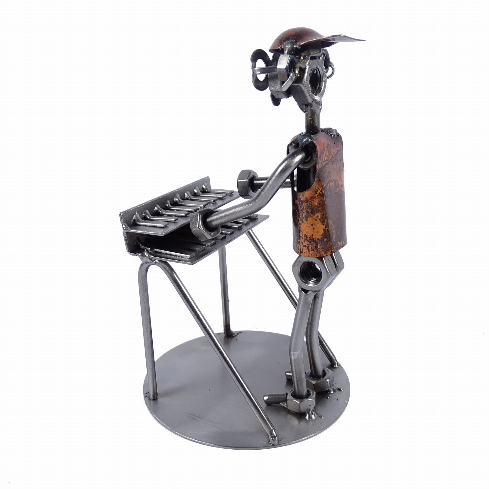 Wykonana z najwyższą starannością, każda figurka jest unikatowym dziełem sztuki, które przyciąga wzrok i staje się centrum uwagi w każdym pomieszczeniu. Precyzyjnie dobrane elementy metalowe, takie jak śrubki, nakrętki i inne drobne akcesoria, zostały przekształcone w elegancką rzeźbę, która z detalami odwzorowuje klasyczny instrument muzyczny.