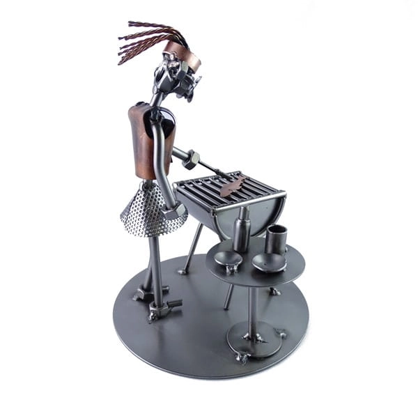 Zastanawiasz się nad oryginalnym prezentem dla pasjonatki kulinarnych wyzwań? Prezentujemy metalową figurkę kobiety przy grillu, która jest idealnym rozwiązaniem dla każdej miłośniczki grillowania i mistrzyni gotowania. Wykonana z najwyższej jakości metalu, ta ręcznie robiona figurka to doskonały dodatek do każdego domu, ogrodu czy tarasu.