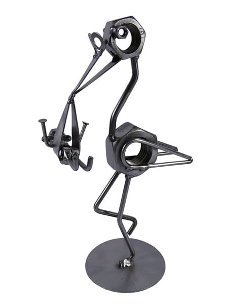 Metalowa figurka przedstawiająca bociana z dzieckiem. Idealna jako prezent dla młodych rodziców, jak i dekoracja do pokoju dziecięcego czy salonu... i nie tylko. Metalowa figurka bociana będzie także ciekawym akcentem na firmowym biurku, doskonale podkreśli wydarzenie jakim jest urodzenie się dziecka.