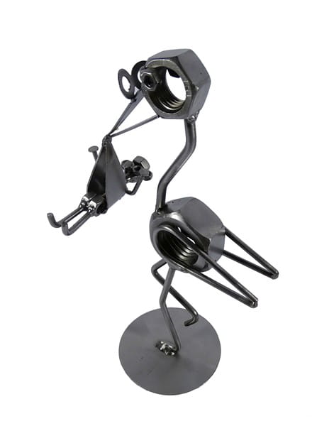 - Figurka wykonana ze stali i pokryta lakierem bezbarwnym.