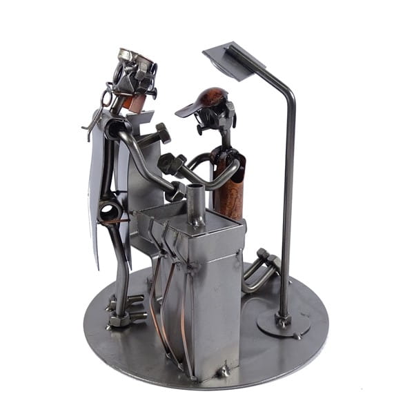 Tylko nasz zespół doświadczonych ślusarzy i spawaczy jest w stanie w tak schludny i niebanalny sposób przedstawić niemal każdy zawód i czynność. W swojej bogatej ofercie posiadamy jeszcze wiele innych figurek nawiązujących do zawodów medycznych, sportu lub praktycznych przyborników na biurko i stojaków na wino.