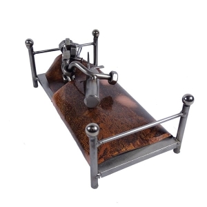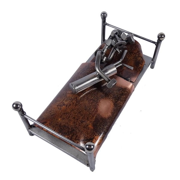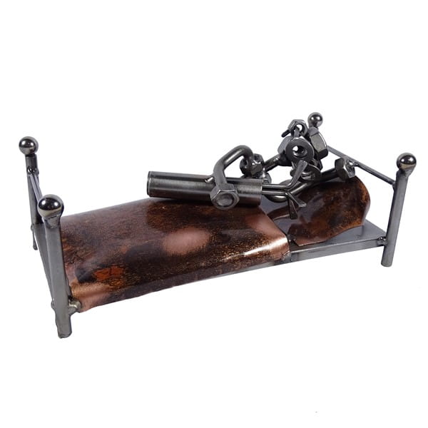 Figurka stworzona całkowicie ze stali i miedzi oraz pokryta lakierem bezbarwnym.