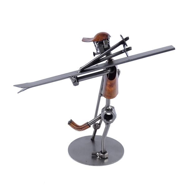 Metalowa figurka Narciarz w gipsie. Prezent z humorem