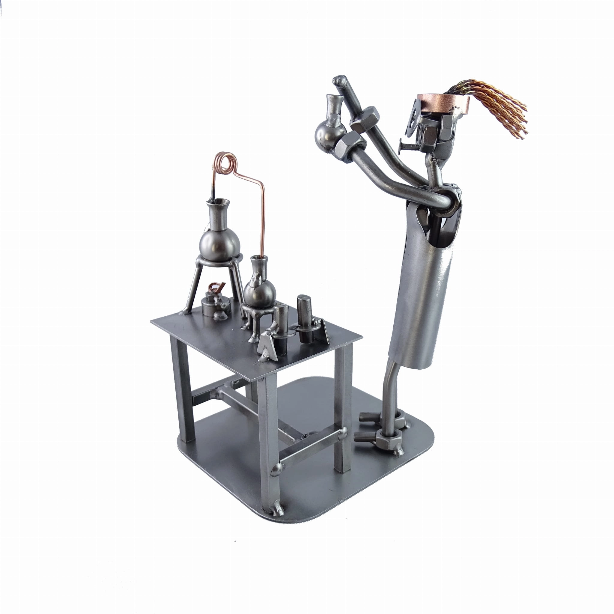 Metalowa figurka przedstawiająca panią Chemik podczas doświadczeń.