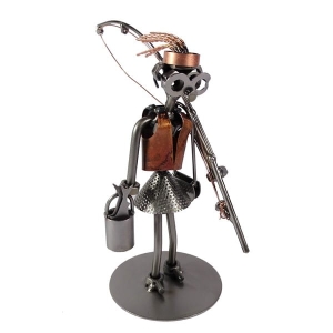 Metalowa figurka Pani wędkarz z wiaderkiem. Oryginalny prezent