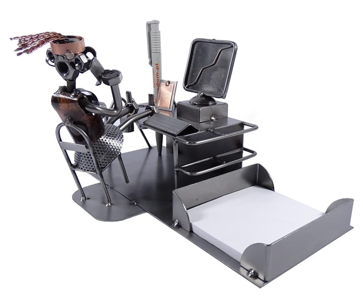 Metalowa figurka Przybornik II kobieta. Praktyczny prezent dla sekretarki