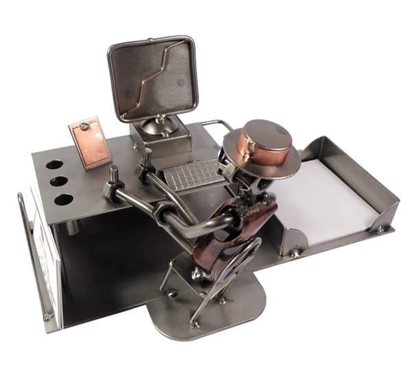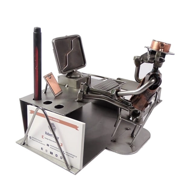 Metalowa figurka Przybornik Sekretarz. Praktyczna dekoracja do biura