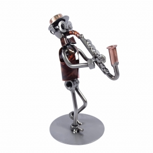 Oto niebanalne i oryginalne metalowe rękodzieło przedstawiające Saksofonistę podczas koncertu.