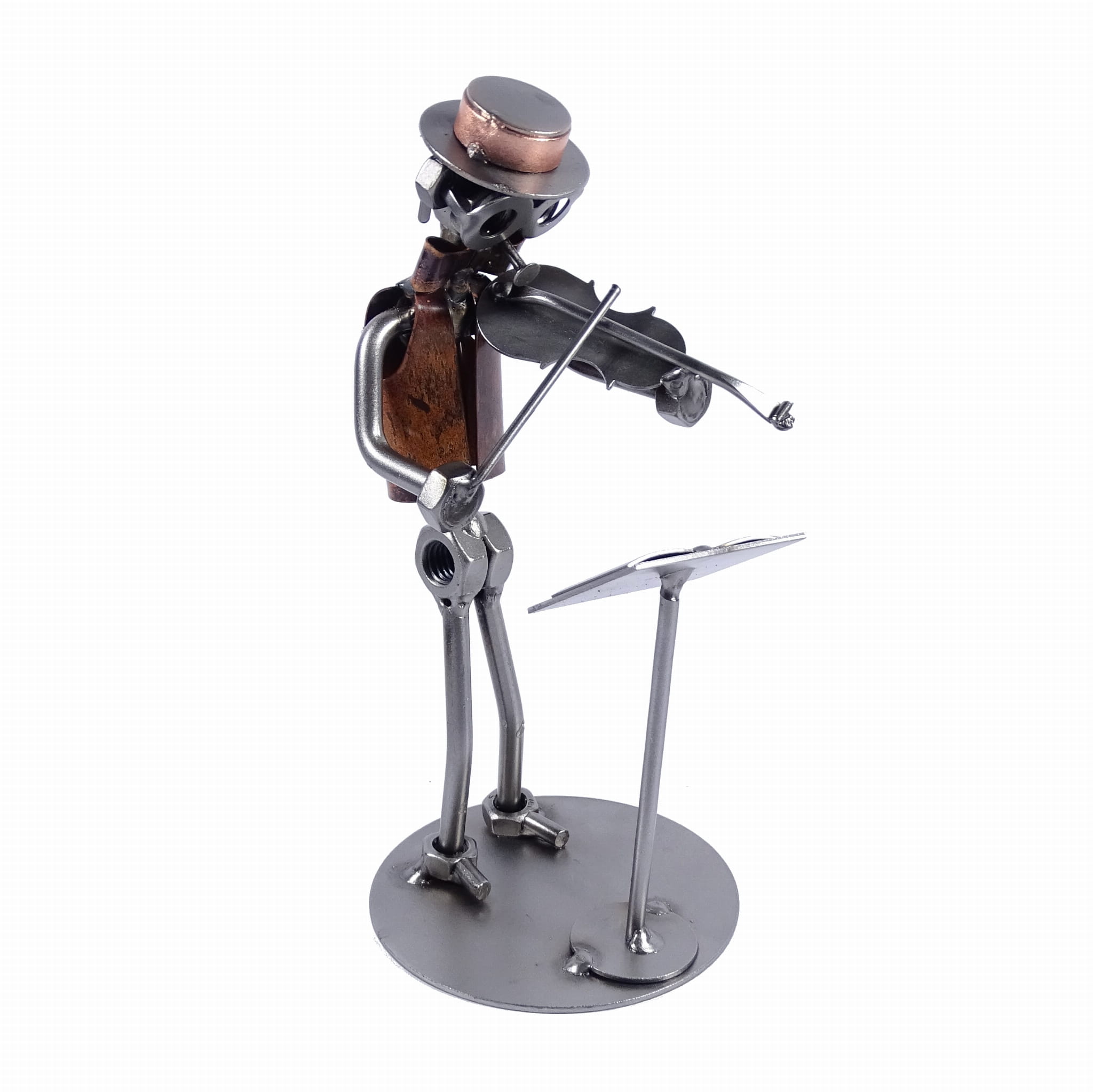 Metalowa figurka przedstawiająca grę na skrzypcach.