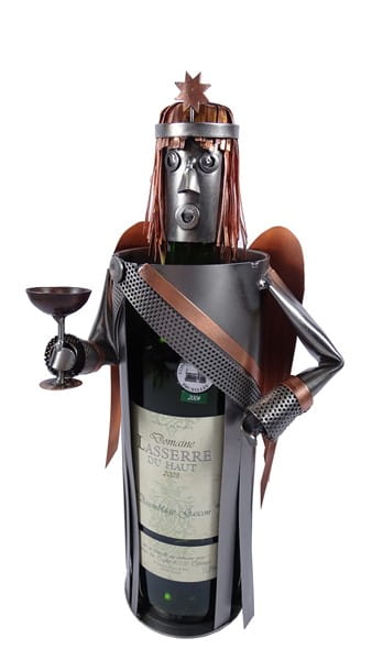 Metalowa figurka Anioł jako stojak na wino. Pasujący do każdej butelki przypominającą tą na wino.