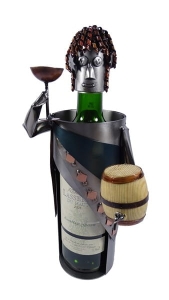 Metalowa figurka Bachus jako stojak na wino.