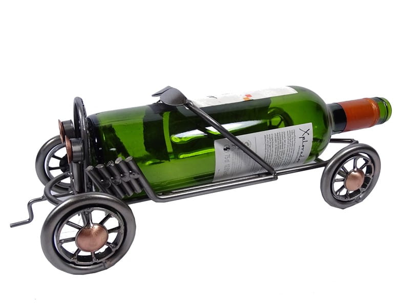 Metalowa figurka Bugatti jako stojak na wino. Stojak pomieści dowolną butelkę kształtem przypominającą wino.