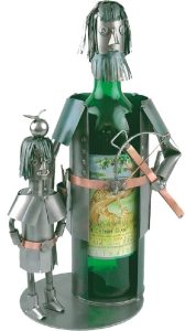 Metalowa figurka Winhelm Tell jako stojak na wino.