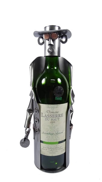 Metalowa figurka Al Capone jako stojak na wino.