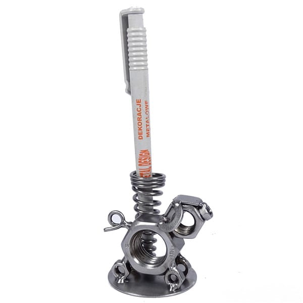 Ta urocza metalowa świnka została stworzona z myślą o osobach, które lubią otaczać się przedmiotami z charakterem. Jest to nie tylko praktyczny przybornik na długopisy, ale również oryginalna ozdoba, która przyciąga wzrok i wzbudza uśmiech. Każda figurka powstaje z wysokiej jakości metalu, co gwarantuje jej trwałość i solidność. Ręcznie wykonane detale świadczą o kunszcie i pasji naszych rzemieślników. Śrubki, nakrętki oraz elementy stalowe, połączone z artystyczną precyzją, tworzą niepowtarzalną całość, która idealnie wpasuje się w różnorodne wnętrza.