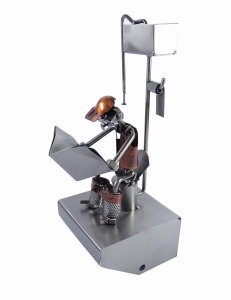 Metalowa figurka WC z gazetą. Praktyczny prezent z humorem