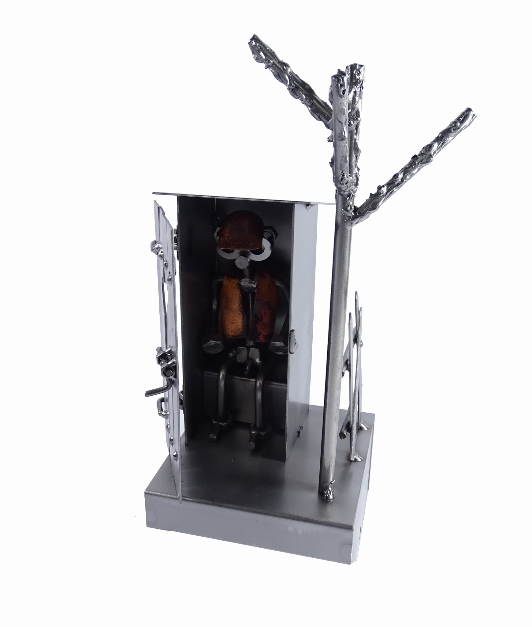 - Figurka wykonana ze stali i pokryta lakierem bezbarwnym.