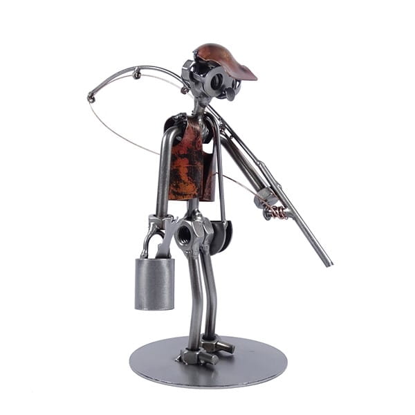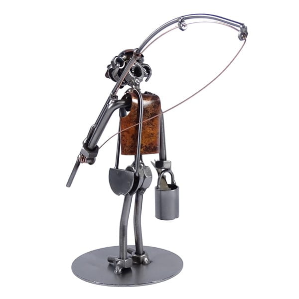 Metalowa figurka Wędkarz z wiaderkiem. Oryginalny prezent dla wędkarza
