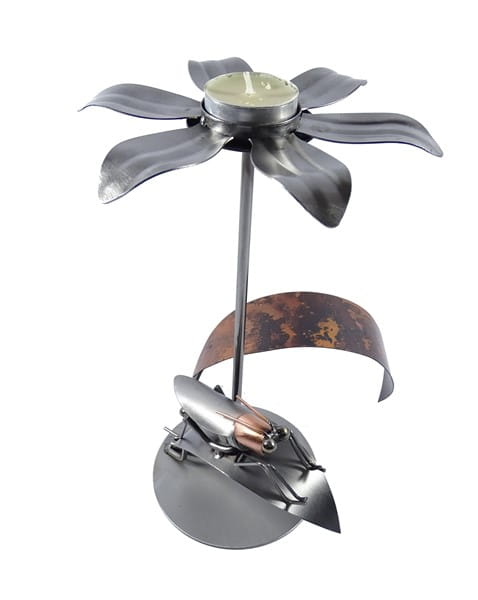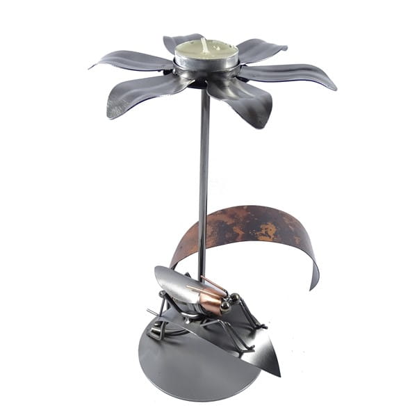 Prezentujemy metalową figurkę przedstawiająca pasikonika jako uchwyt na świeczkę.