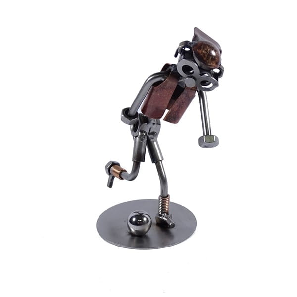 Metalowa figurka przedstawiająca piłkarza. Nasze metalowe rękodzieło to idealny pomysł na prezent dla wielbiciela piłki nożnej. Doskonale sprawdzi się jako trofeum! Dekoracja idealnie podkreśli Twój sportowy charakter. Upiększy domową półkę lub miejsce pracy.
