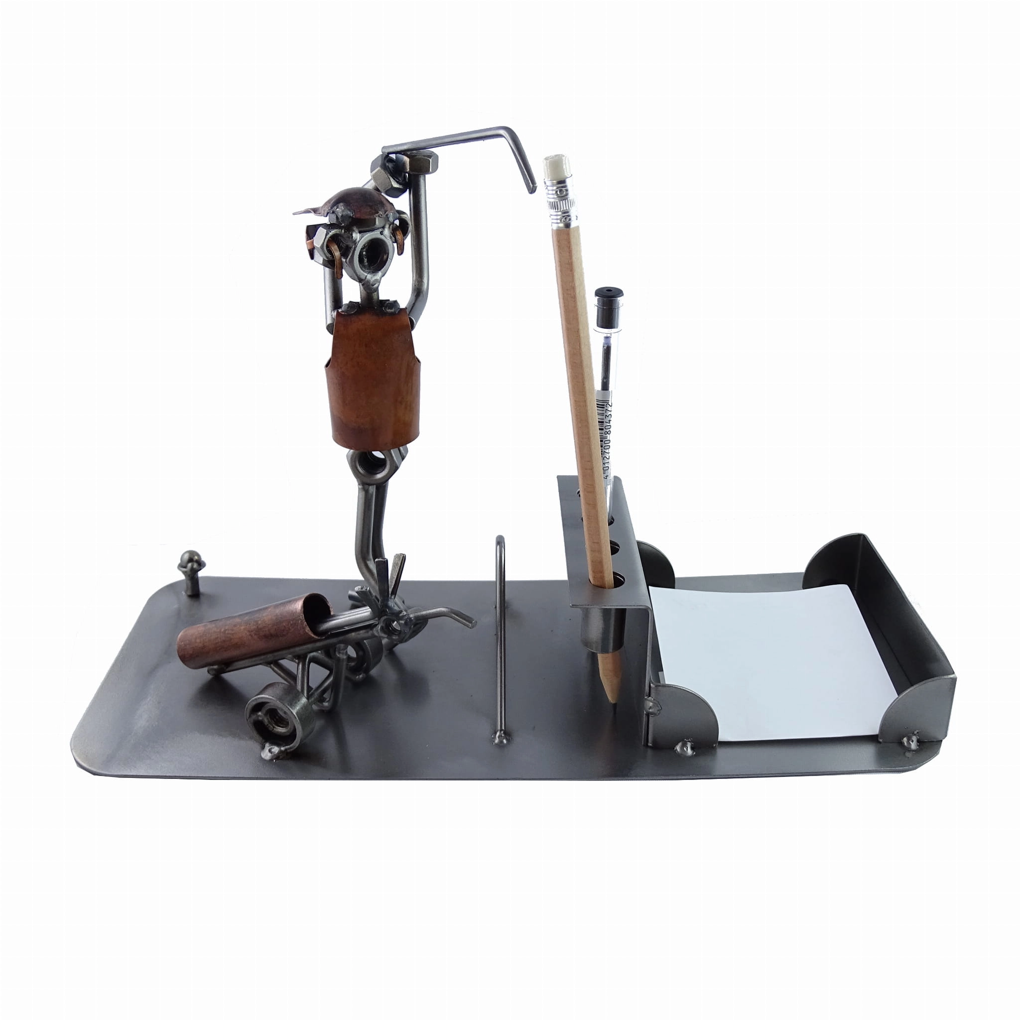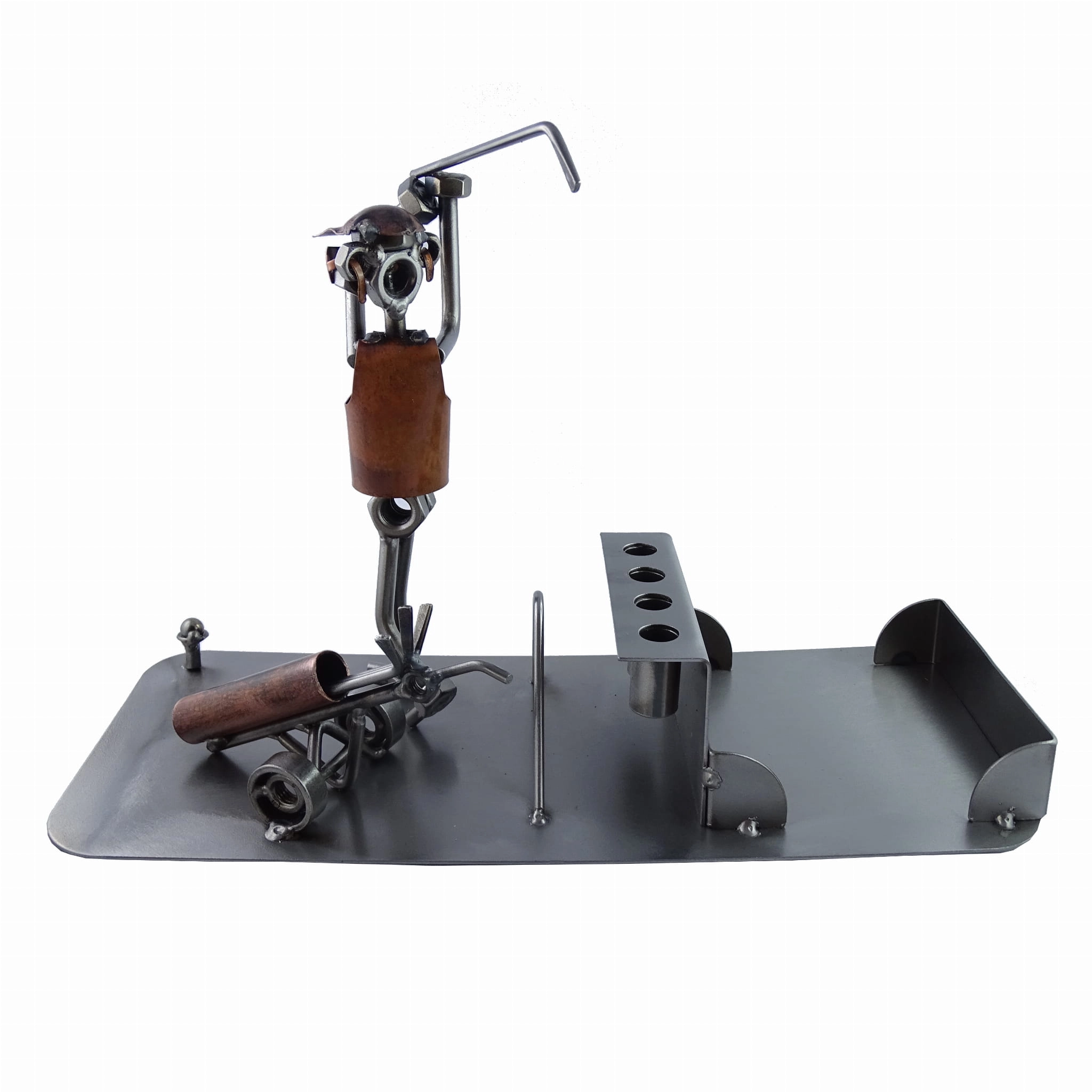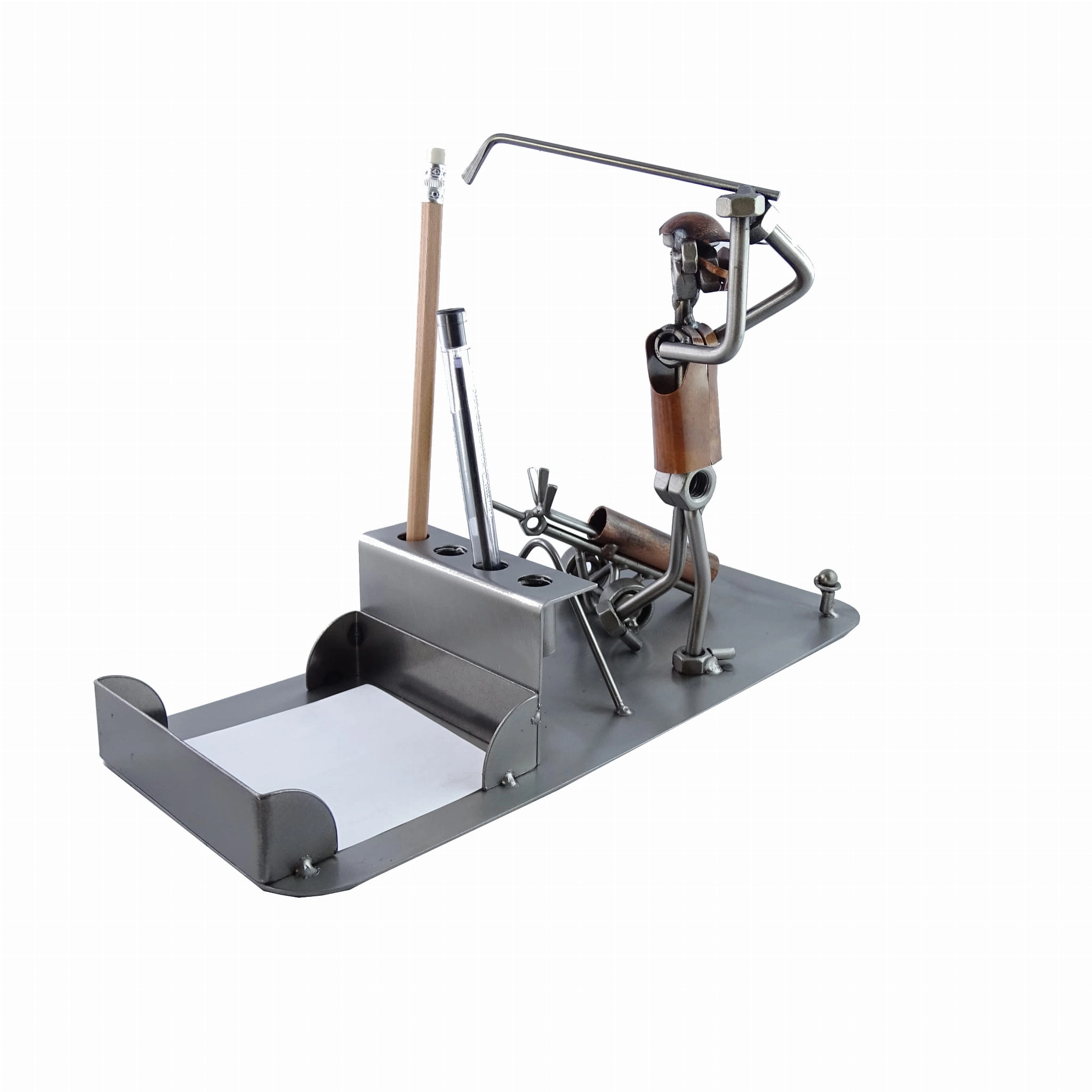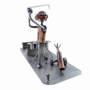 Metalowy przybornik do biura z wyjątkową figurką przedstawiająca Golfistę z zamachem