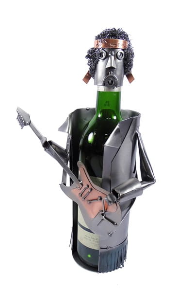 Metalowa figurka J.Hendrix jako stojak na wino. Pasuje do każdej butelki kształtem przypominającą wino.